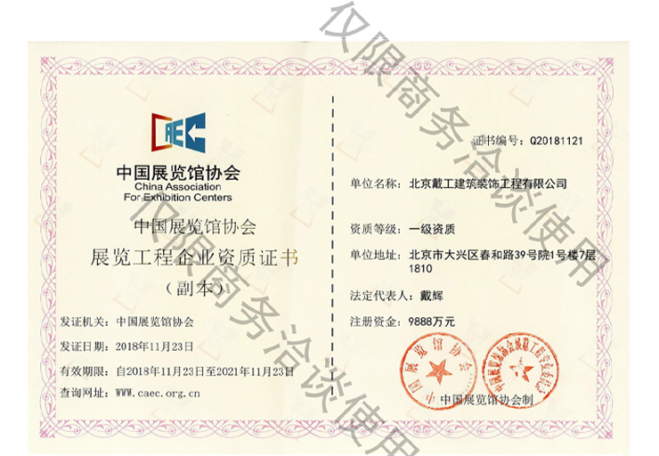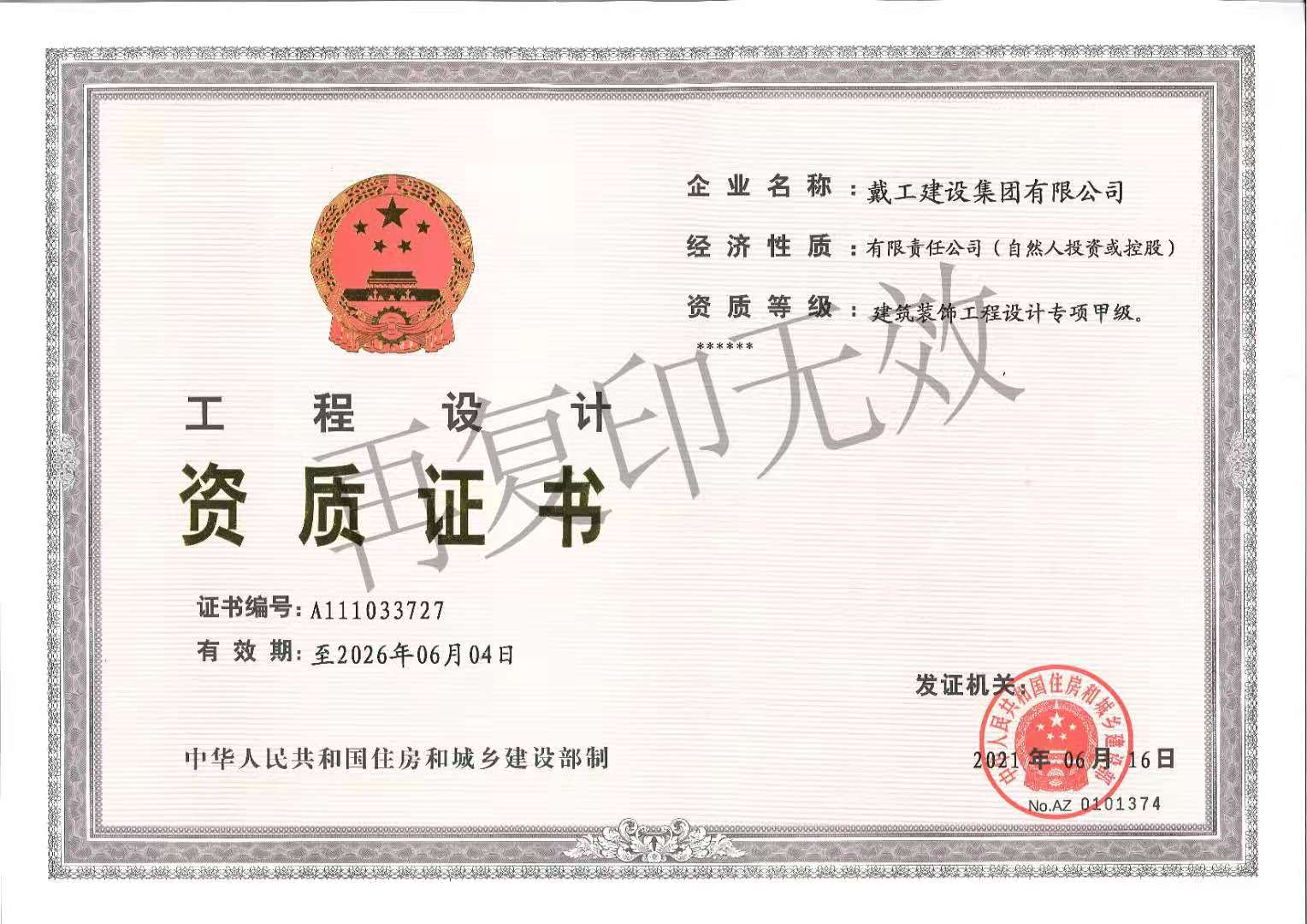 戴工建設(shè)集團(tuán)有限公司,創(chuàng)建于2009年,注冊資本9888萬元人民幣。公司位于北京市大興區(qū)。具有建委頒發(fā)的建筑裝飾裝修專業(yè)壹級,防水保溫工程專業(yè)壹級,建筑幕墻專業(yè)貳級,消防設(shè)施專業(yè)貳級,電子與智能化專業(yè)貳級,特種工程(結(jié)構(gòu)補(bǔ)強(qiáng))專業(yè)不分等級,建筑機(jī)電安裝專業(yè)貳級,環(huán)保工程專業(yè)貳級,鋼結(jié)構(gòu)專業(yè)貳級,建筑工程總承包貳級,建筑裝飾工程設(shè)計(jì)專項(xiàng)甲級,展覽陳列工程設(shè)計(jì)與施工壹級,展覽展示工程壹級...更多>>